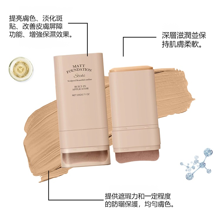 雙頭帶刷子粉底棒